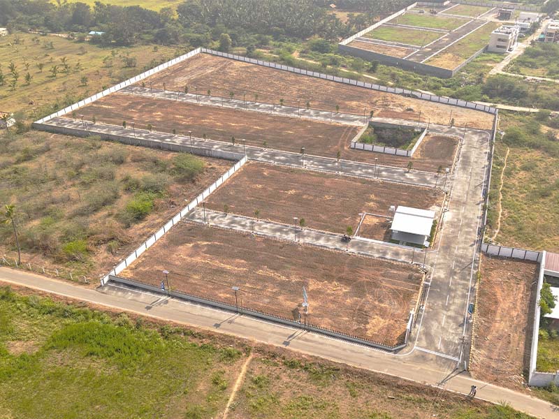 - Fully compounded gated community villa plots.